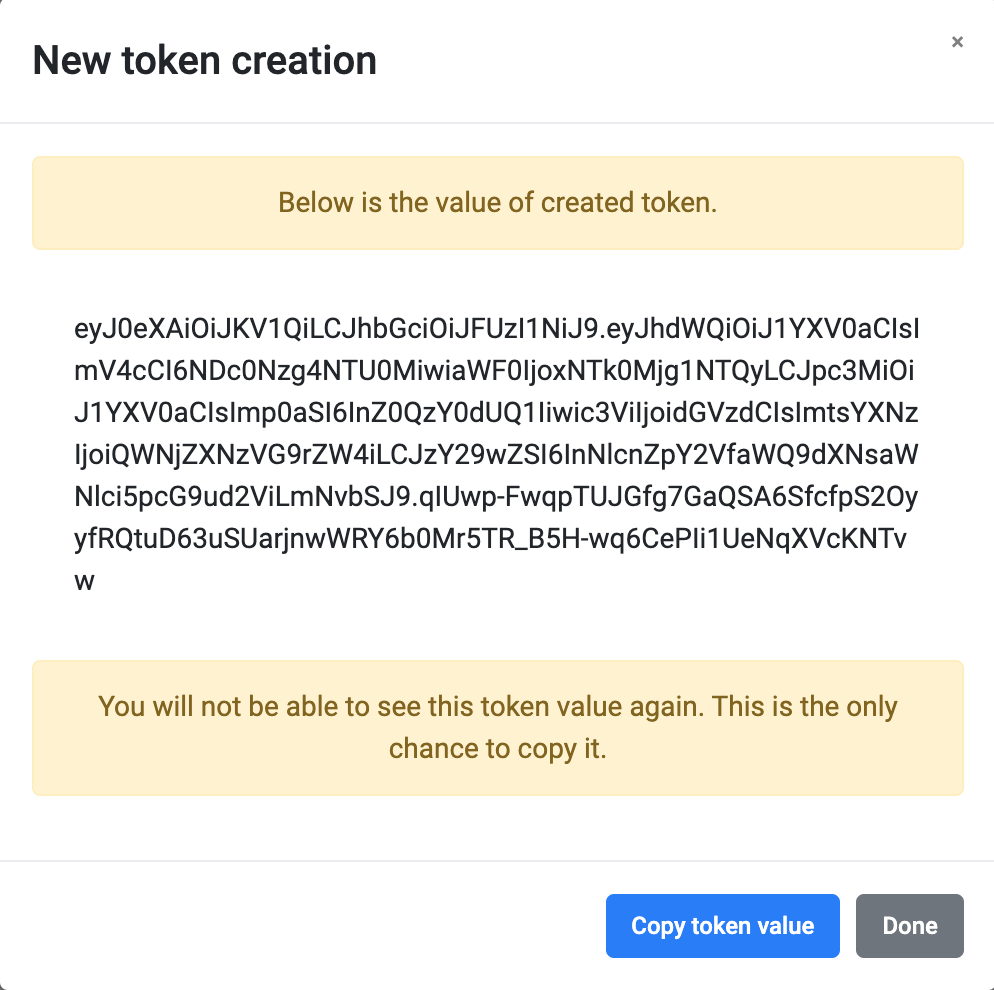Click the Copy token value button and save your token in a separate file.