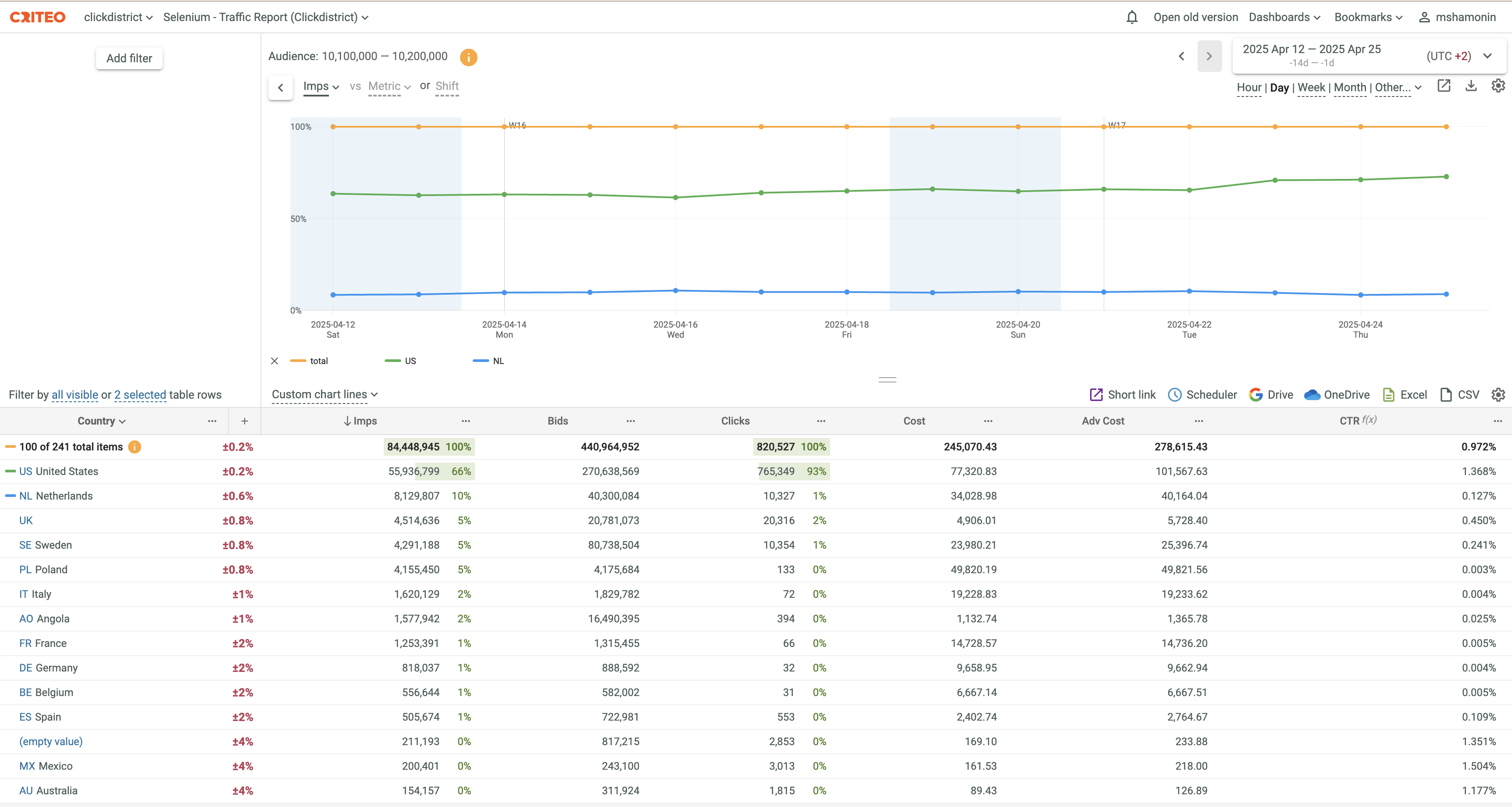 - Select the desired data rows for plotting (at least 1 data row should be selected, and Total should be present on the Chart).