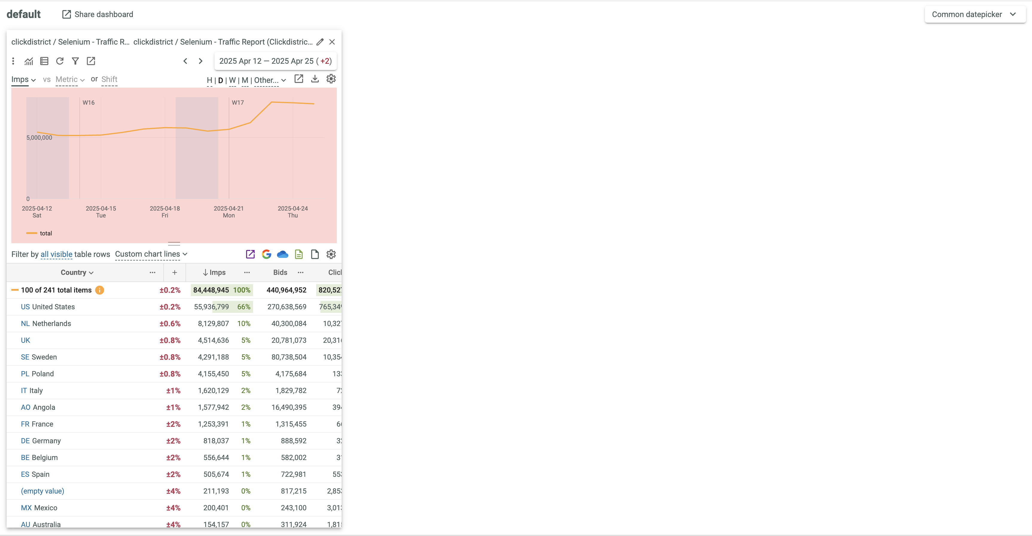 If several Dashboards exist, select the required Dashboard from the drop-down list.