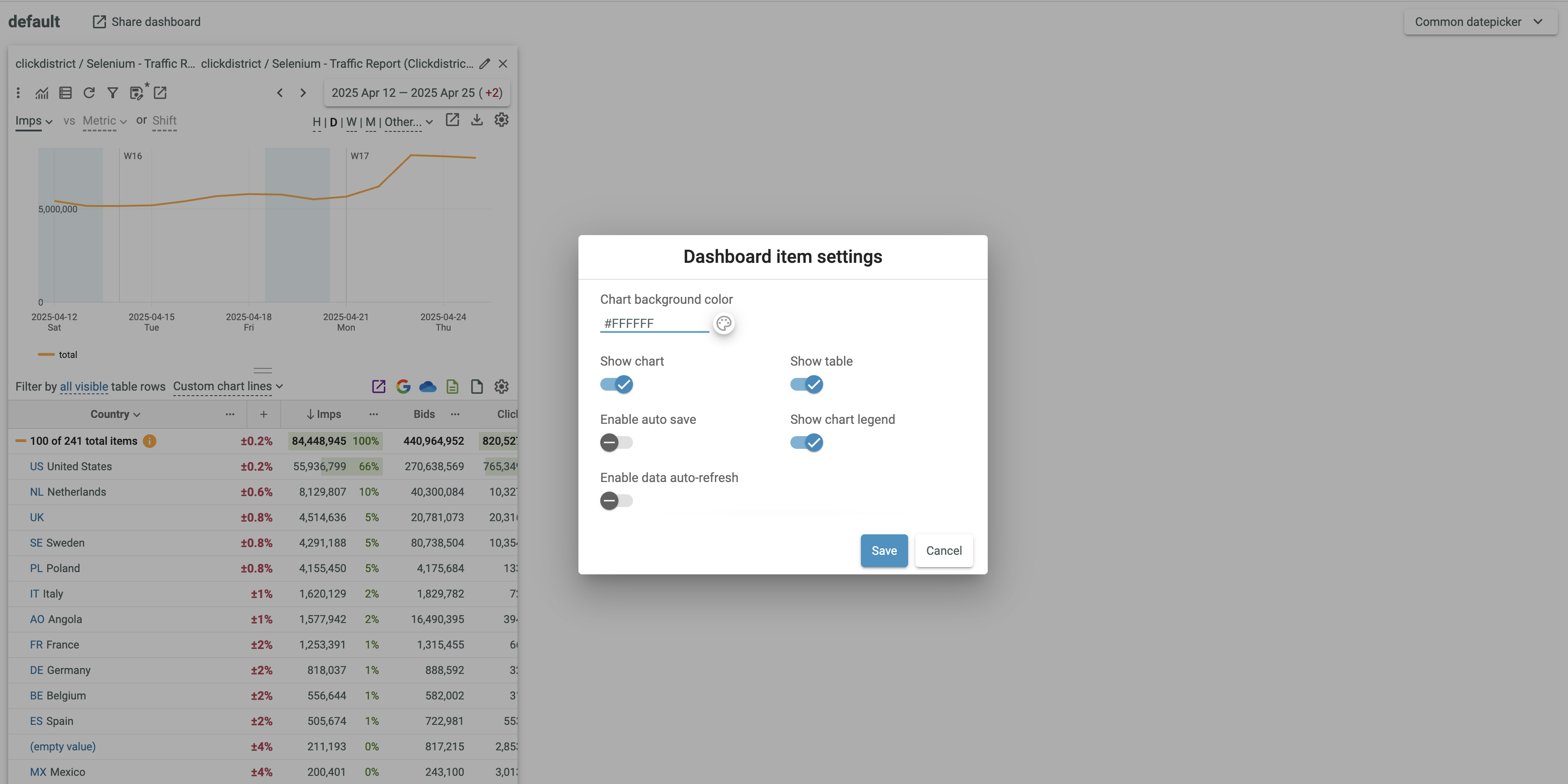 - Switch on/off the Show chart legend option.