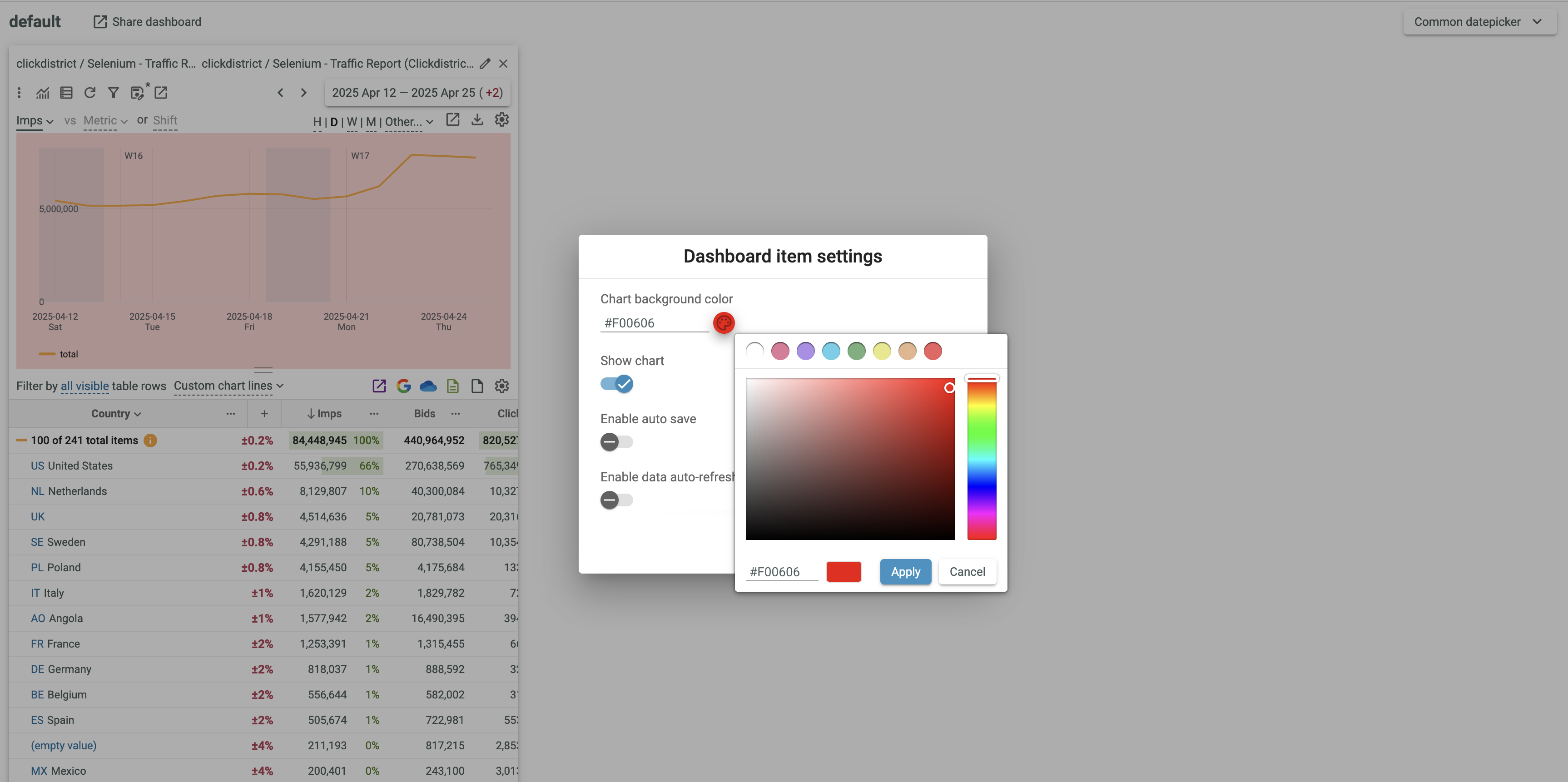 - Enter the desired chart background color into the Color box or click the Change chart background color