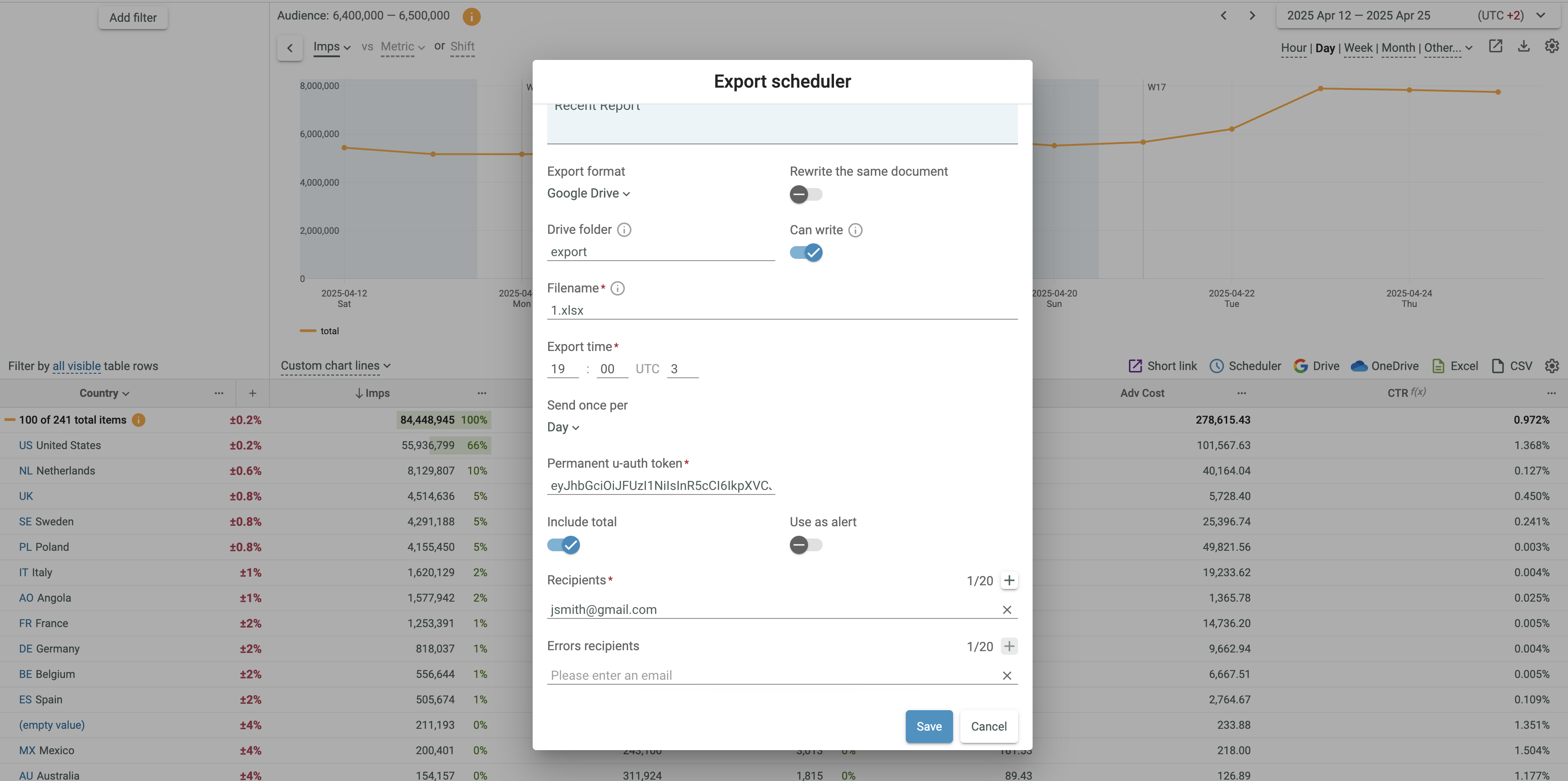 Changing permanent u-Auth token for a scheduled report¶