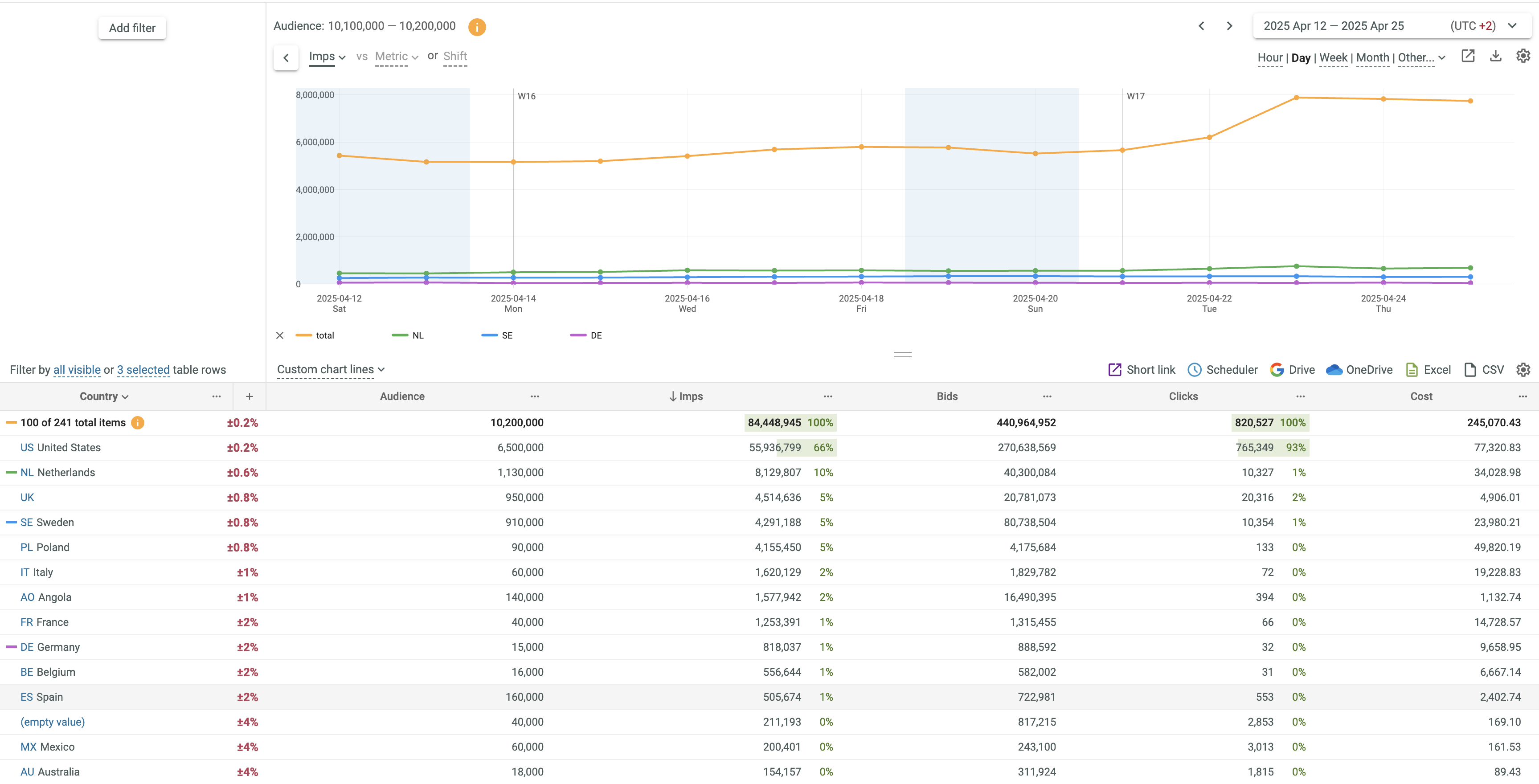 - See that the advanced filter is applied to the NL, DE and SE key field values.